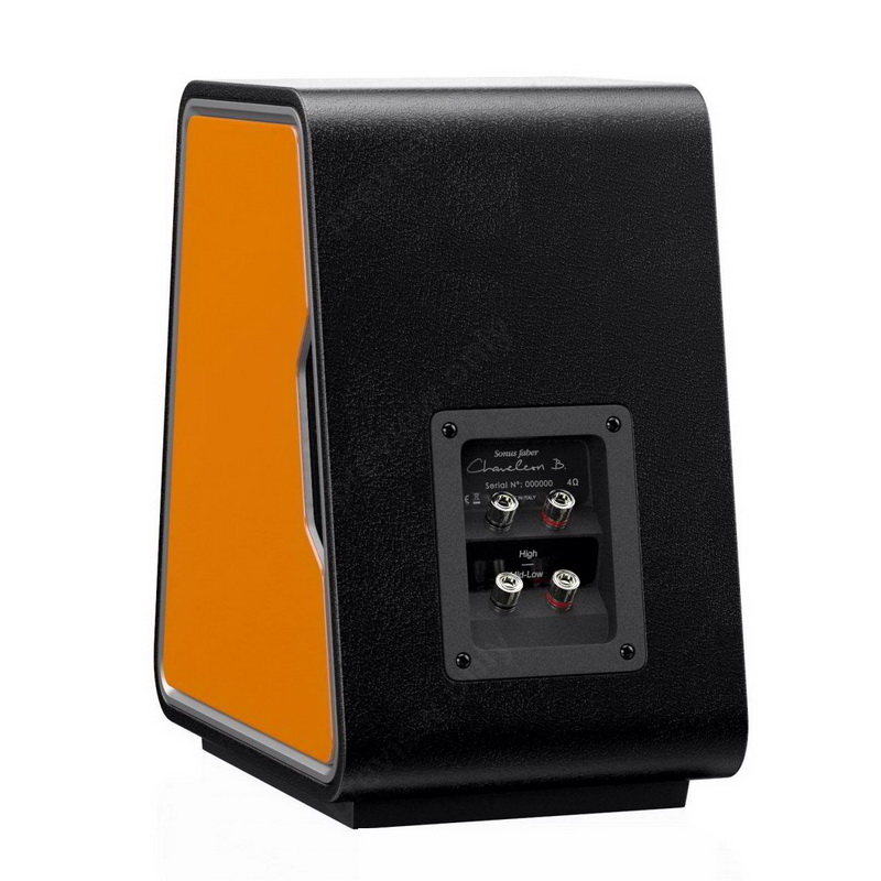 Корпус Sonus Faber Chameleon B с двух сторон по кругу отделан кожей (повторяя фирменный стиль Sonus Faber) с плавным загибом на ребрах. Не отделанными остались только боковые стенки, немного утопленные вглубь корпуса — именно в эти места устанавливаются цветные панели с небольшим вырезом, оставленным для логотипа. Панели изготовлены из нескольких слоев материалов разной плотности для повышения инертности и избавления от резонансов.