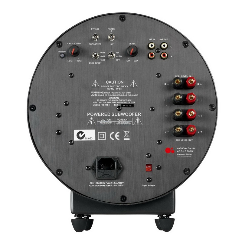 Сабвуфер Gallo TR-3D выполнен в закрытом корпусе из закаленной стали и оборудован 250-мм драйвером, диффузор которого изготовлен из алюминия с керамическим покрытием. Драйвером управляет встроенный усилитель D-класса мощностью 300 Вт (RMS). Частотный диапазон сабвуфера простирается от 18 до 180 Гц. Кроме того, TR-3D имеет впечатляющий набор настроек и способов коммутации: есть регулировки громкости и частоты среза, Bypass-режим, переключатель фазы, программа усиления басов 0/+3/+6 дБ, линейные и высокоуровневые входы и выходы.