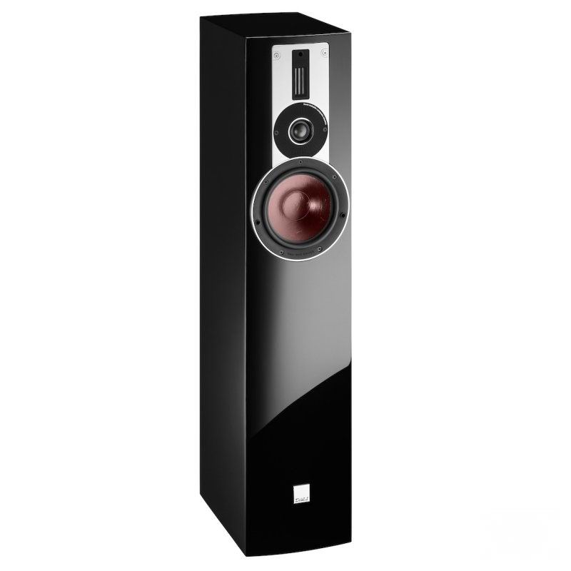 DALI Rubicon 5 является младшей напольной моделью в данной линейке. Акустическая система выполнена в компактном корпусе высотой 89 см и отличается качественной внешней отделкой (варианты: черный или белый рояльный лак, или натуральное дерево). Излучатели на передней панели имеют аккуратную металлическую окантовку, благодаря чему DALI Rubicon 5 очень хорошо выглядит со снятой защитной сеткой. Для механической развязки от поверхности пола акустические системы комплектуются шипами, которые при желании можно заменить на демпфирующие резиновые опоры (также поставляются в комплекте).