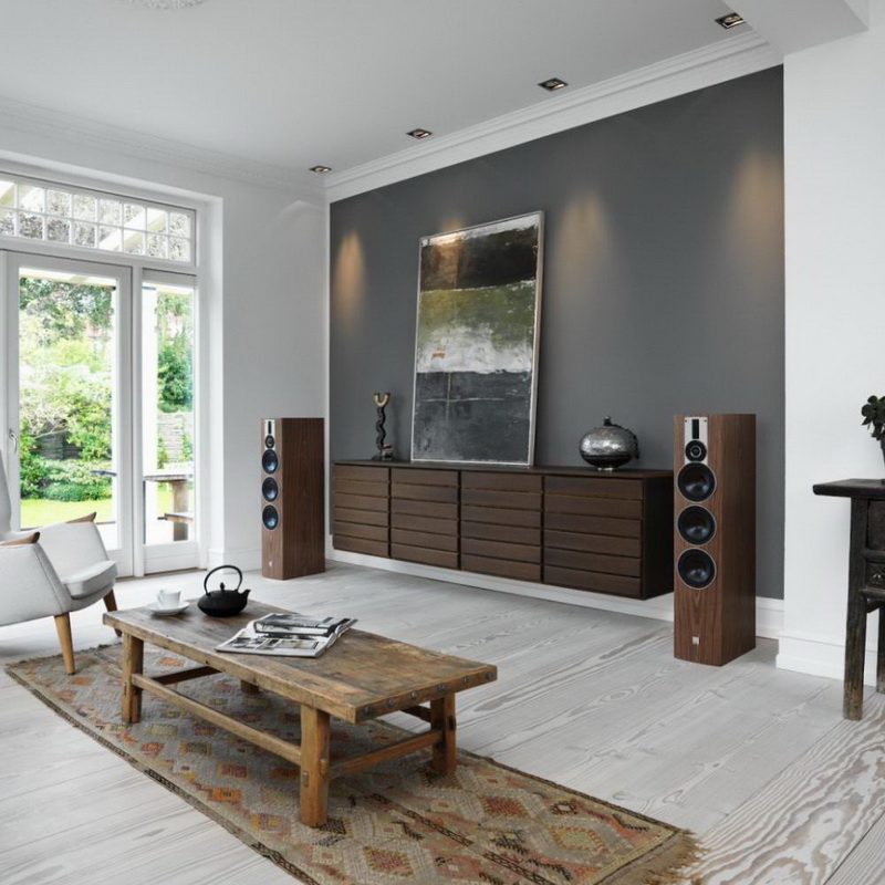 Топовая модель DALI Rubicon 8 оснащена усиленной басовой секцией, состоящей из трех динамиков. При высоте корпуса немногим более метра колонки не слишком заметны в современном интерьере, чему способствует также и качественная внешняя отделка. Аккуратный монтаж излучателей на передней панели позволяет колонке хорошо смотреться со снятой защитной сеткой, которая имеет невидимую магнитную фиксацию.