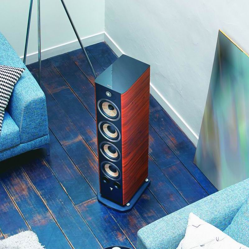 Акустическая система Focal Aria 936 получила 165 мм СЧ-динамик и тройку НЧ-драйверов аналогичного диаметра. Все данные излучатели используют диффузоры, которые включают в себя слой из волокон льна, обрамленный двумя ультратонкими армирующими слоями стекловолокна. Такой диффузор-сэндвич может похвастаться малым весом, отличным внутренним демпфированием, великолепной изгибной жесткостью и быстрой реакцией на появление сигнала. В результате удается получить естественное, насыщенное, цельное и динамичное звучание с плотным быстрым басом и минимальным окрашиванием. Акустически инертный корпус Focal Aria 936 изготовлен из плит MDF, толщина которых в определенных местах достигает 25 мм. Непараллельные боковины корпуса способствуют ликвидации внутренних стоячих волн и минимизируют нежелательные резонансы.