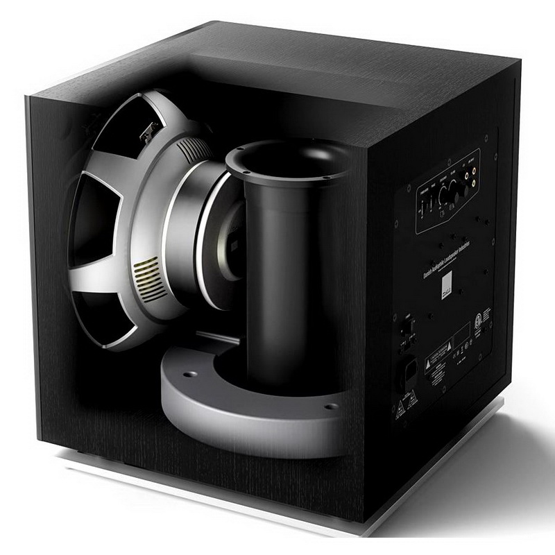 Диффузоры имеют широкие подвесы из резины, которые позволяют им перемещаться с большой амплитудой и эффективно гасят паразитные резонансы. Нижний басовик включается в работу, начиная с частоты 800 Гц, что обеспечивает необходимое расширение диапазона воспроизводимых басов без сужения динамического диапазона. Низкочастотники смонтированы в акустически изолированной внутренней камере (стенка которой также играет роль дополнительной стяжки, повышающей жесткость корпуса) и нагружены на фазоинвертор, выходные отверстия которого выведено на заднюю панель. Фазоинверторы находятся точно напротив басовиков для снижения турбулентности выходящего воздушного потока.