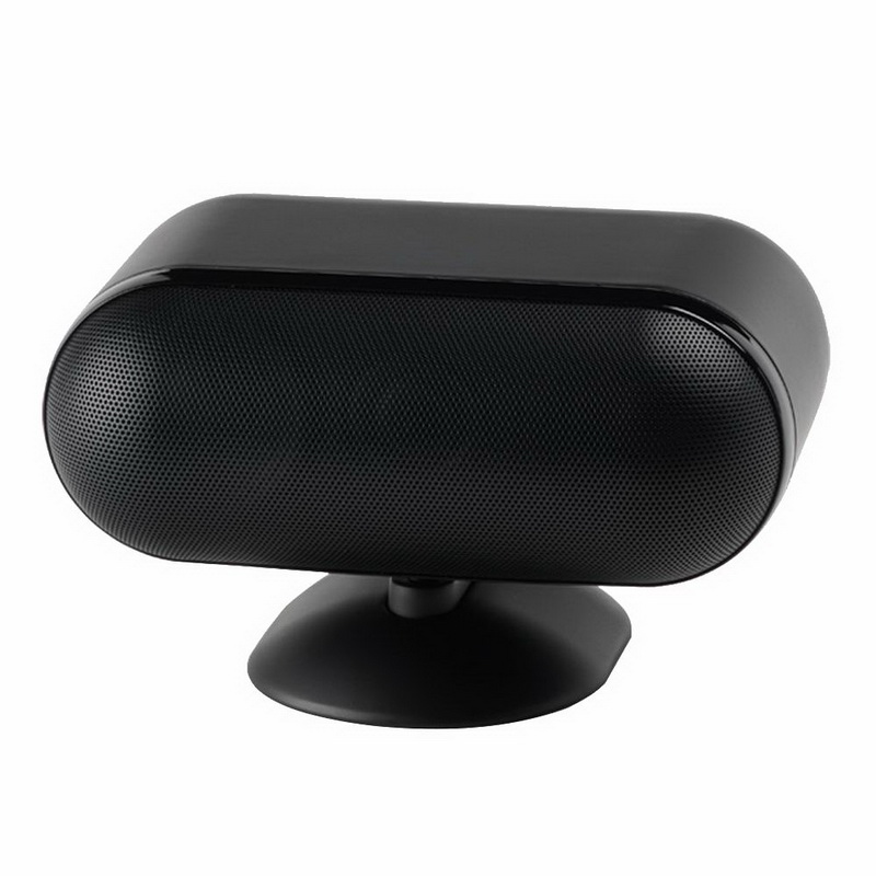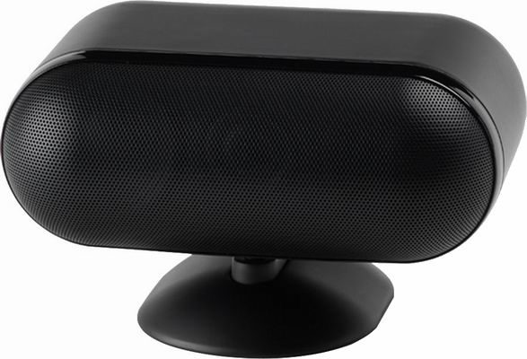 Жёсткий гриль представляет собой изящную выпуклую сеточку с хромированным ободком по всему периметру. Овальная подставка легко превращается в настенное или потолочное крепление — достаточно повернуть колонку на шарнире. Пружинные клеммы спрятаны в нише, подключить к ним можно только голый провод относительно небольшого сечения.