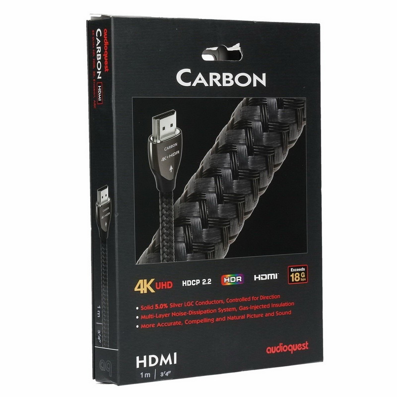 Кабель AudioQuest Carbon HDMI имеет высококачественную конструкцию, соответствующую моделям премиального класса. Кабель изготовлен с использованием отборных материалов и фирменных конструктивных решений, что гарантирует его превосходные технические характеристики и высокую надежность. Данная модель полностью соответствует требованиям, предъявляемым к соединителям HDMI стандарта 2.0 (4K видео + HDR).