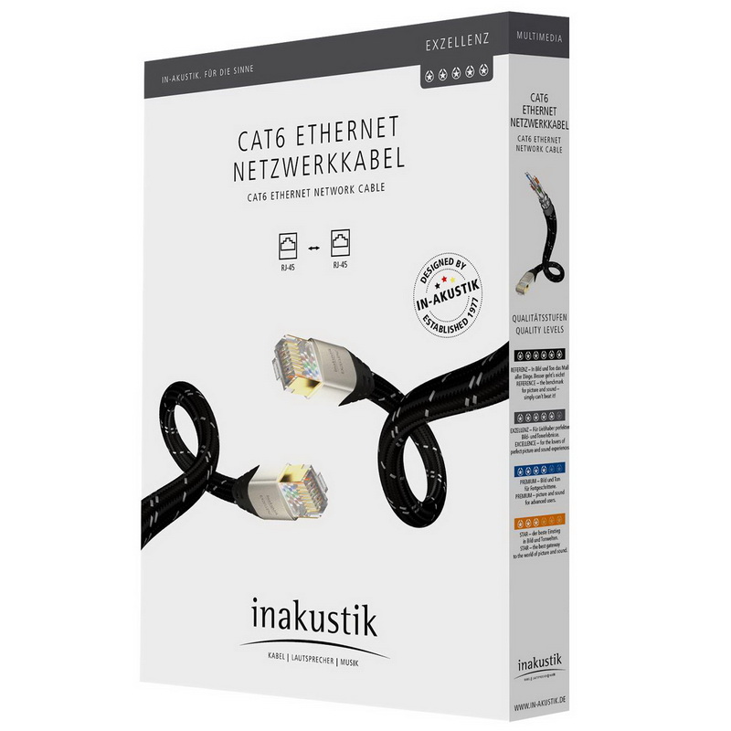 Inakustik Exzellenz CAT6 Ethernet Cable, 7.5 m, SF-UTP, AWG 24, 006711075