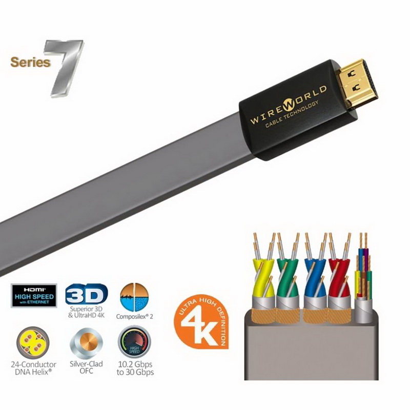 HDMI-кабель WireWorld Silver Starligth 7 HDMI поддерживает передачу данных с разрешением 1080p, HD4K и все 3D-форматы, а также технологию ARC, позволяющую телевизору через HDMI-кабель передавать аудио данные, исключая использования дополнительного отдельного аудио-кабеля. С помощью данного изделия вы можете передавать цифровой сигнал со скоростью до 21 Гбит/с. Преимуществом является поддержка цветового разрешения «Deep Color» 48 бит, которое обеспечивает получение четкой и насыщенной картинки.