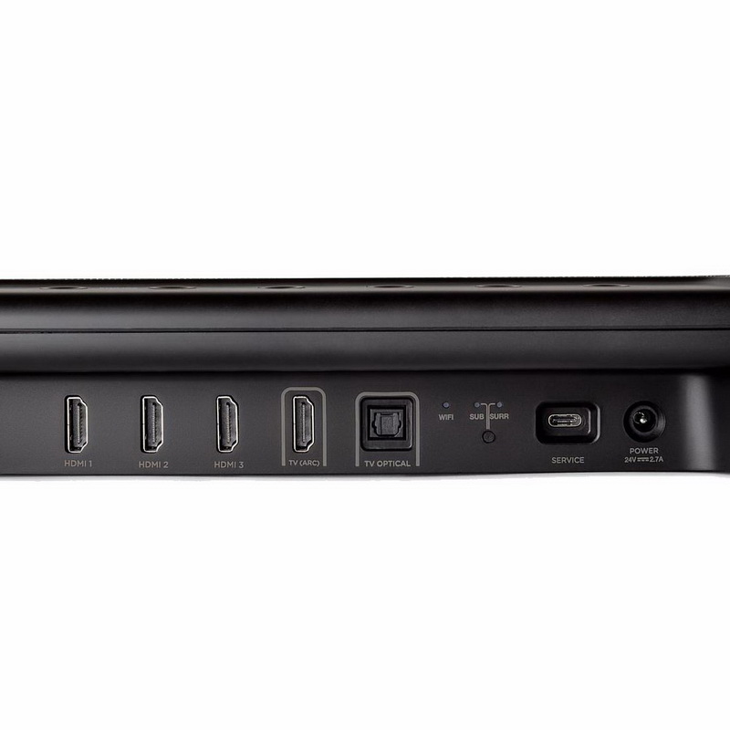 В торцах саундбара предусмотрены порты фазоинверторов расширяющегося аэродинамического профиля. Беспроводной сабвуфер получил 8-дюймовый динамик и выдает мощность до 100 Вт. Общая мощность системы составила 200 Вт.
