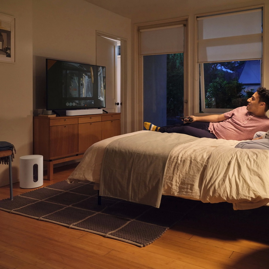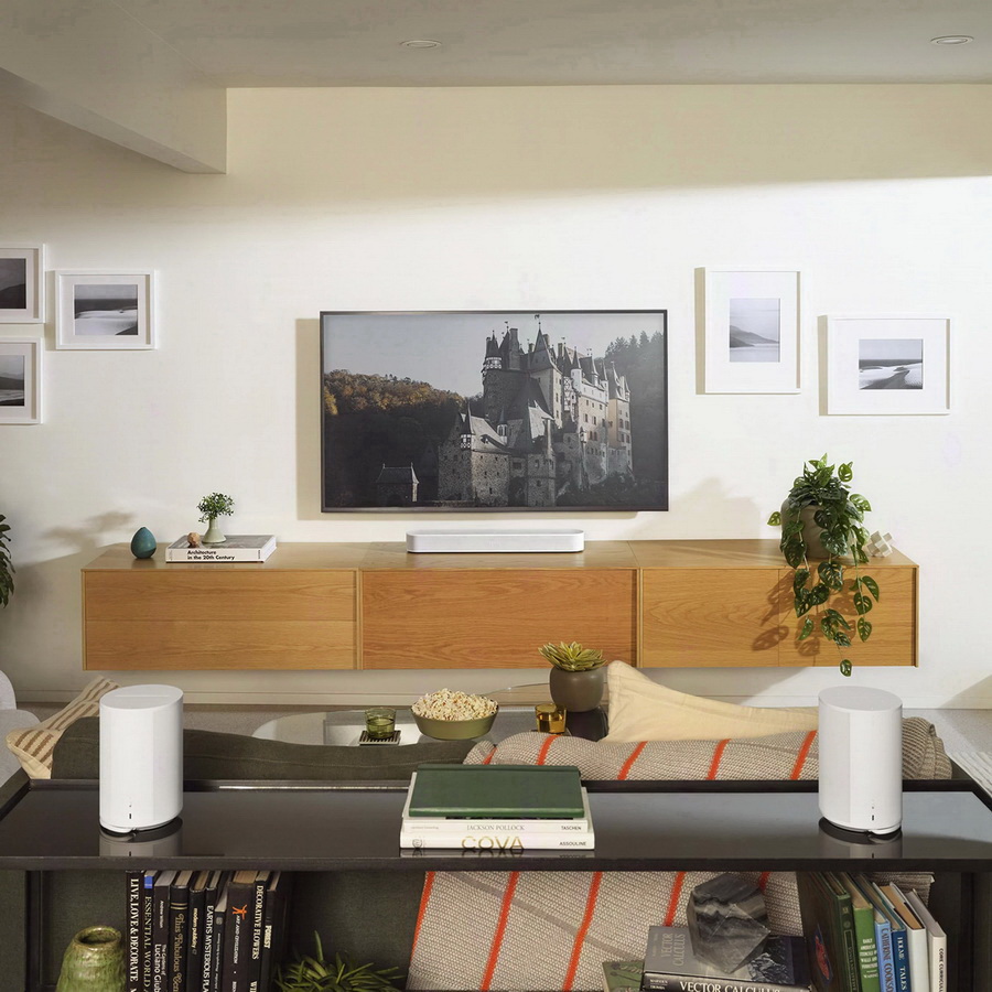 Саундбар Sonos Beam (Gen 2) отлично подходит для размещения в небольших комнатах, где он сможет обеспечить убедительное звуковое сопровождение кинофильмов или телепередач, не занимая много места. Sonos Beam можно поставить на полку перед телевизором или подвесить на стену, что делает ее размещение весьма гибким. В колонке Sonos Beam реализована технология создания объемного звука за счет использования данных, полученных с помощью пяти измерительных микрофонов. Они оценивают расстояние колонки до слушателей, стен и окружающих предметов, используя затем эту информацию для создания звукового поля за счет переотражения акустических волн. В результате с помощью всего одной компактной колонки удается получить довольно убедительный эффект объемного звучания, однако при желании систему на базе Sonos Beam можно дополнить тыловыми беспроводными колонками этой фирмы.