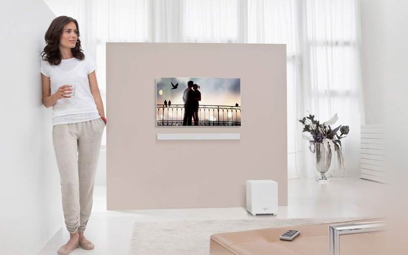 Canton DM 900 состоит из звуковой панели и беспроводного сабвуфера. Саундбар имеет размеры 89 x 6 x 6,6 см — не самый тонкий из представленных на рынке, но он прекрасно подойдет к любому современному дисплею. В отличие от аналогичных комплектов, Canton DM 900 предназначен для работы без ресивера. Он оснащен цифровыми (коаксиальным и оптическим) и аналоговым (RCA) аудиовходами. Беспроводное соединение осуществляется по каналу 5,8 ГГц. Саундбар декодирует Dolby Digital, DTS и DTS True Surround HD. Он поставляется с интегрированными настенными кронштейнами в черном или белом варианте дизайна.