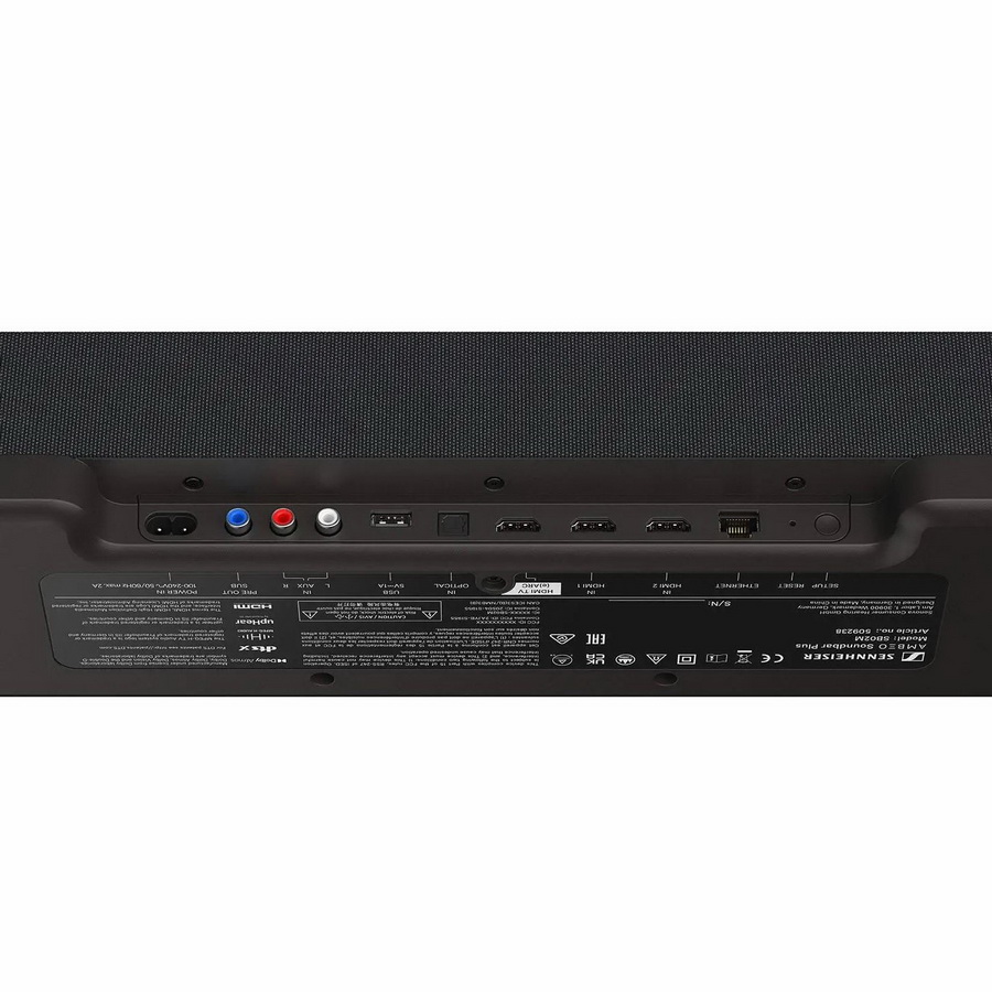 Звуковая панель Sennheiser Ambeo Soundbar Plus хорошо оснащена возможностями подключения. В общей сложности имеется три порта HDMI, один eARC для подключения к телевизору и два обычных входа HDMI, а также оптический и традиционный RCA. Существует также физический порт для подключения проводного сабвуфера, если вы того пожелаете. При беспроводной связи у вас есть выбор из нескольких стандартов, включая Bluetooth, AirPlay 2, Spotify Connect, Tidal Connect и встроенный Chromecast. Он также имеет встроенную функцию Alexa и совместим с HomeKit.