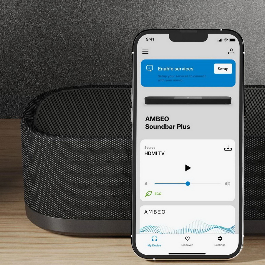 Настройте саундбар с помощью специального приложения Smart Control и встроенных калибровочных микрофонов, и тогда вы готовы к уникальному опыту Ambeo: убедительный 3D-звук, как в настоящем домашнем кинотеатре, удивительно глубокие и насыщенные басы, а также базовое качество звука, которое также позволяет слушать музыку в стерео - чистое удовольствие.