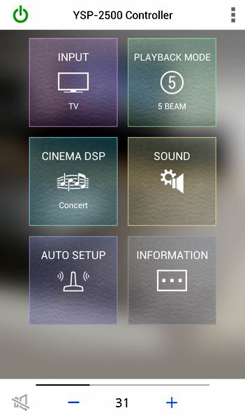 YSP-2500 обеспечивает пространственное звучание за счет отраженных от стен лучей звука, попадающих к месту прослушивания под разными углами. Основным является режим 5 BeamPlus 2, имитирующий 7-канальный источник сигнала. Помимо него, предлагается и ряд других режимов прослушивания: 3 BeamPlus2 + Stereo, 5 Beam, Stereo + 3 Beam, 3 Beam, Stereo, Target и My Surround.