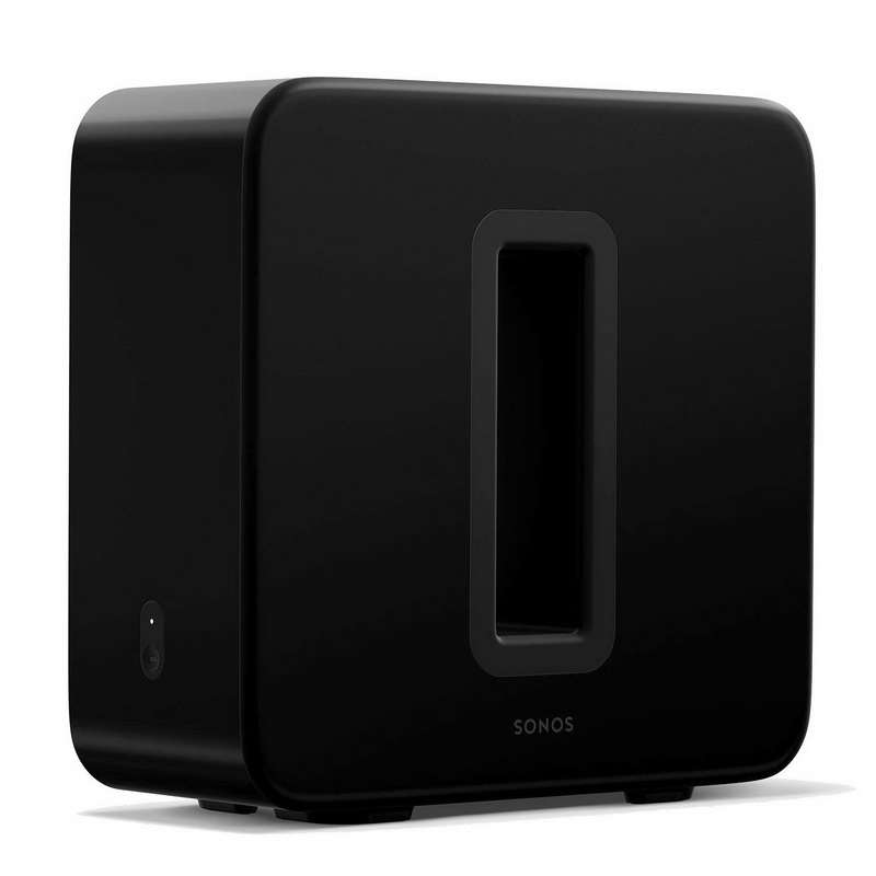 Активный сабвуфер Sonos SUB предназначен для комплектации фирменных аудиосистем Sonos, нуждающихся в дополнительной поддержке на басах. Оригинальная форма корпуса сабвуфера обусловлена его конструкцией - в аппарате используются два встречно направленных динамика, работающих на общую центральную полость. За счет этого разработчикам удалось решить сразу несколько задач и в первую очередь сделать саб нечувствительным к месту установки в комнате. Сабвуфер Sonos SUB можно устанавливать даже вдоль стены или предметов мебели без ущерба для качества низких частот. Кроме того, динамики взаимно гасят создаваемые ими вибрации стенок корпуса, благодаря чему звучание Sonos SUB получается неокрашенным даже при высокой громкости звука. Сабвуфер можно размещать вертикально или горизонтально, что весьма удобно.