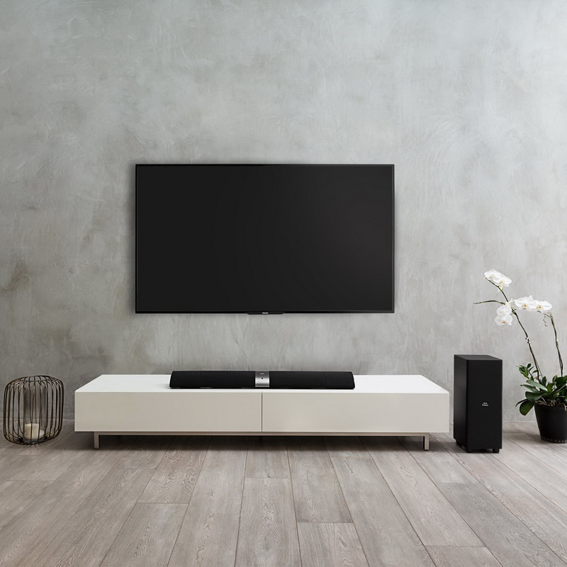 Philips Fidelio B5 – это потрясающий звук для просмотра ТВ-шоу и фильмов каждый день. Для того чтобы добиться полного погружения в звук необходимо расположить две колонки позади, и обволакивающий звук будет обеспечен даже на большой площади. Благодаря передовому алгоритму калибровки звука Вам не нужно волноваться о расположении съемных динамиков. Как только Вы разместите их, где хотите, то сможете управлять встроенным алгоритмом калибровки, чтобы обеспечить объемный звук независимо от того, где находятся динамики.