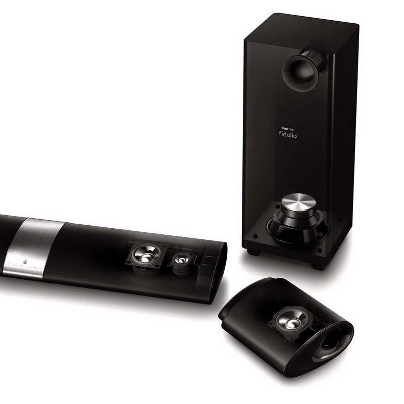 Сбалансированный и динамичный звук обеспечивается за счет 3-х дюймовых широкополосных динамиков и ВЧ-динамиков с мягким куполом, а также с помощью технологий Dolby Digital и Dolby Pro Logic II, обеспечивающих объемную обработку звука. Благодаря включению запатентованной беспроводной аудио технологии никогда не возникнет сетевых помех между беспроводными съемными динамиками независимо от того, куда Вы их поместите. Philips Fidelio B5 отличается превосходным минималистичным дизайном с алюминиевой отделкой. Даже ткань, покрывающая динамик, усовершенствована: она покрыта специальной обшивкой, которая гарантирует сопротивление пыли и любой жидкости, которая может попасть на колонку. В то же время ткань дышит и позволяет звуковым волнам проходить свободно.