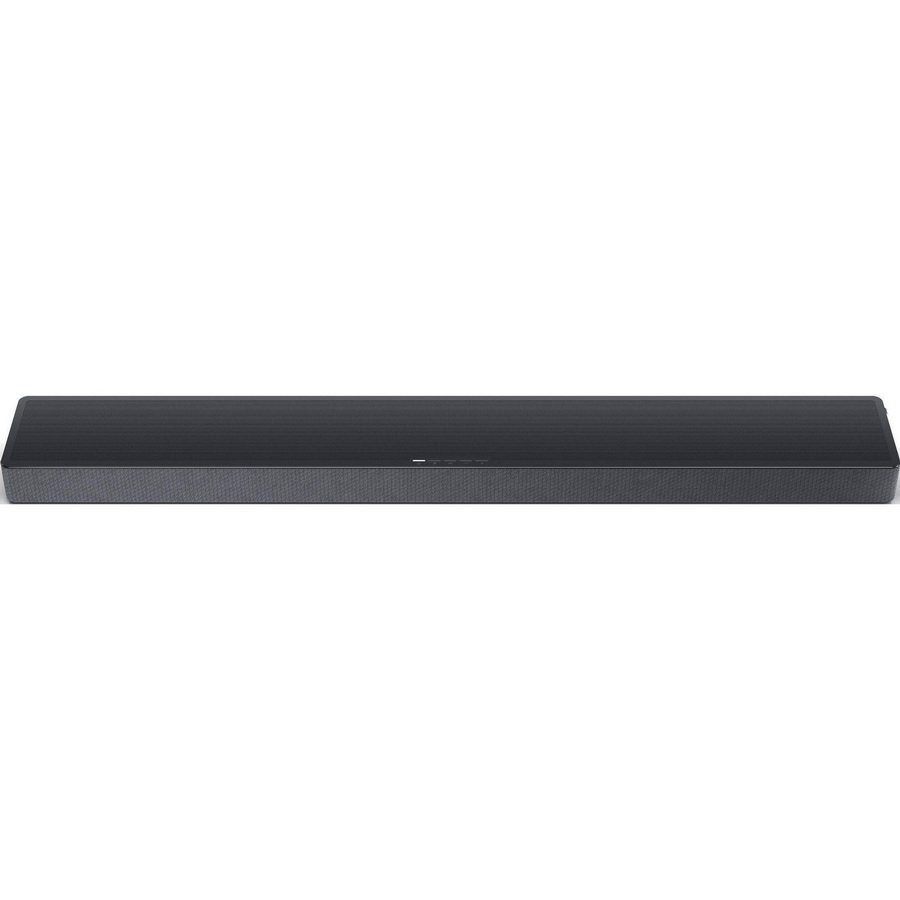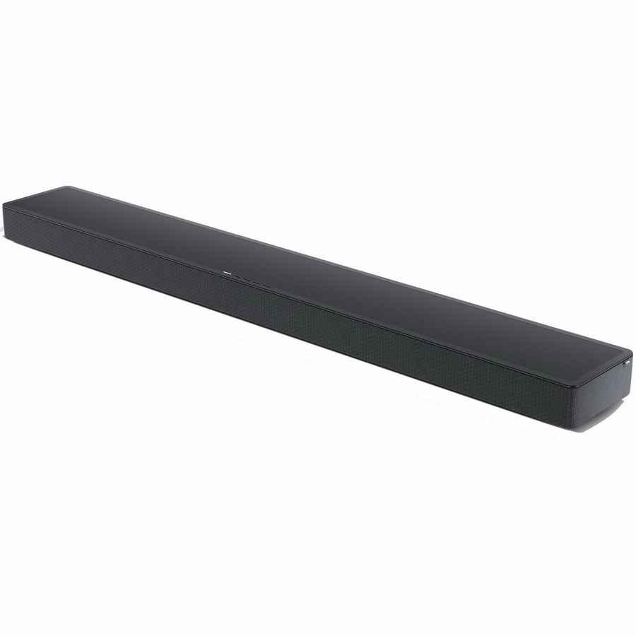 Вдоль верхнего края корпуса саундбара расположен ряд кнопок для управления воспроизведением и громкостью. На передней панели находится довольно неприметный ЖК-дисплей, отображающий текущий уровень громкости и выбранный режим звука. Он также показывает, воспроизводится ли в данный момент аудиодорожка в формате Atmos или Dolby Digital.