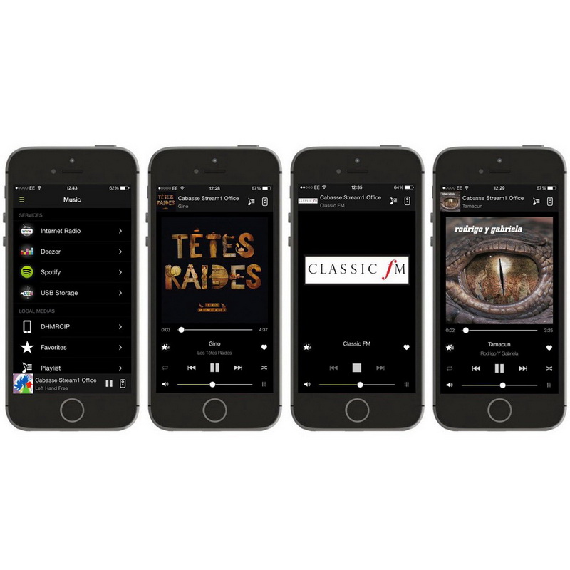 Благодаря технологии DLNA, музыку с Cabasse Stream Base также можно передавать на любое другое проигрывающее устройство. Для беспроводного проигрывания музыки с мобильных устройств есть AptX Bluetooth. Поддерживаемые форматы файлов: WAV, AIFF, FLAC и MP3. BASE поддерживает файлы с разрешением аудио до 24 бит/96 кГц.