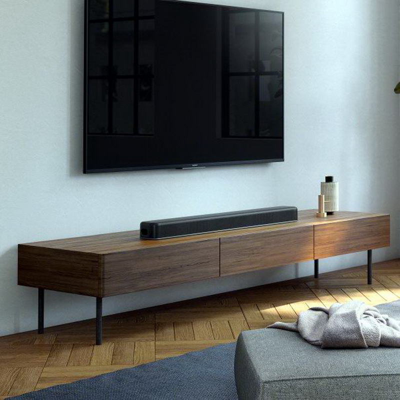 Теперь вы можете наслаждаться всем, что вы смотрите в максимальном 7.1.2ch. Наша продвинутая цифровая обработка сигнала преобразует даже стереозвук в кинематографический объемный звук одним нажатием кнопки на пульте дистанционного управления. Имея размеры всего 890 x 64 x 96 мм, саундбар Sony HT-X8500 является тонким, компактным и ненавязчивым и дополняет ваш телевизор BRAVIA. Отличительными элементами дизайна являются перфорированная металлическая решетка динамика и каналы сабвуфера с обеих сторон.