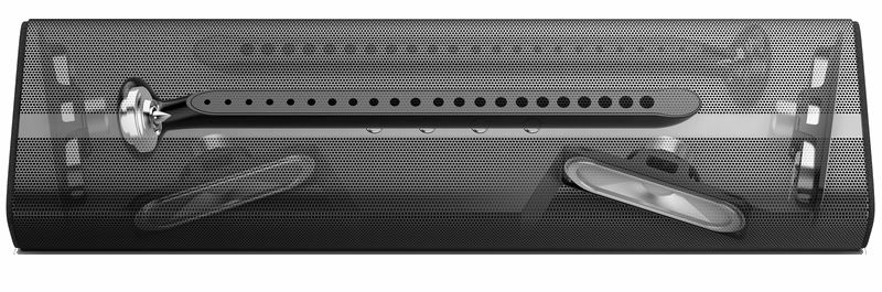 Волноводы имеют по 18 отверстий, причем диаметр каждого последующего чуть больше, чем у предыдущего. Звуковая картина формируется таким образом, словно каждое отверстие — это отдельный твитер, направляющий звук в сторону стен, которые, в свою очередь, отражают его в точку прослушивания. Помимо работы с телевизором в роли саундбара Fidelio B1 может воспроизводить музыку с портативных устройств посредством Bluetooth-подключения.