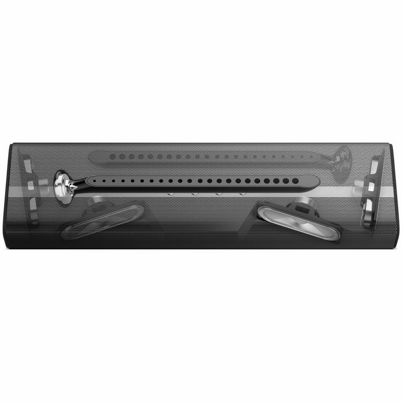 Саундбар Philips Fidelio B1 оснащен четырьмя высокочувствительными динамиками, расположенными симметрично на фронтальной и боковых панелях. Фронтальные динамики излучают звук под углом друг к другу, а их акустические оси пересекаются, что позволяет получить звуковую сцену шириной 180 градусов. В результате миниатюрный саундбар воспроизводит саундтрек фильма очень эффектно и объемно, с первых звуков вовлекая зрителя в просмотр. Fidelio B1 имеет два твитера с волноводами, располагающимися в верхней части и обеспечивающими более широкое рассеивание высокочастотных звуков.