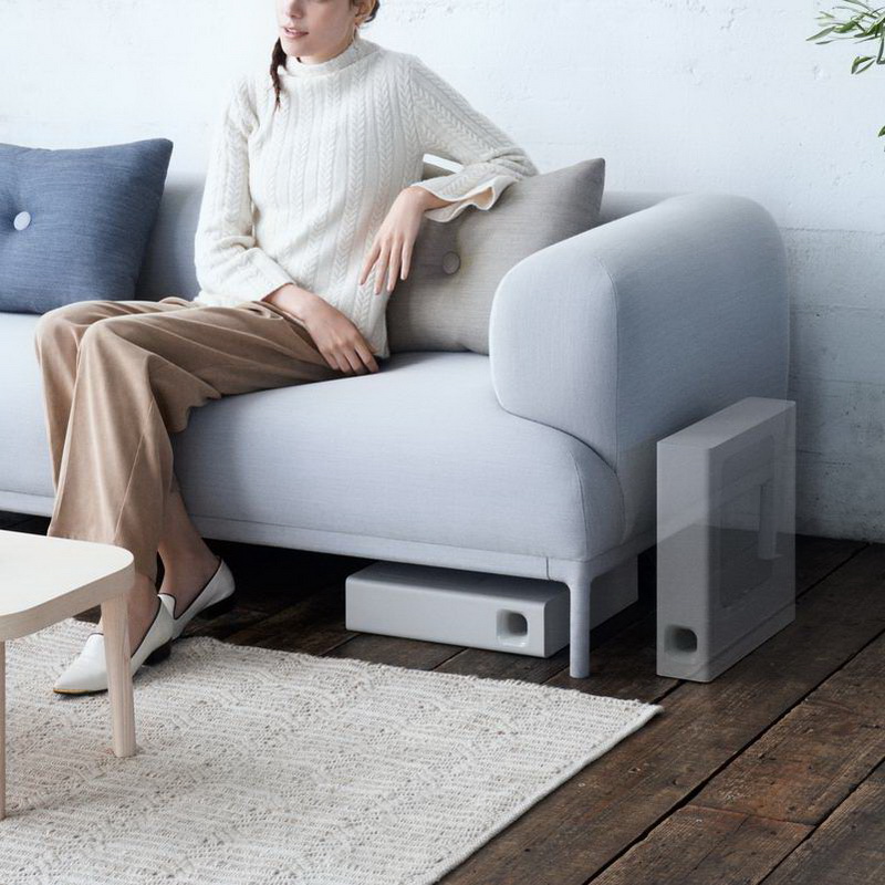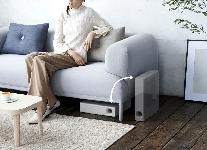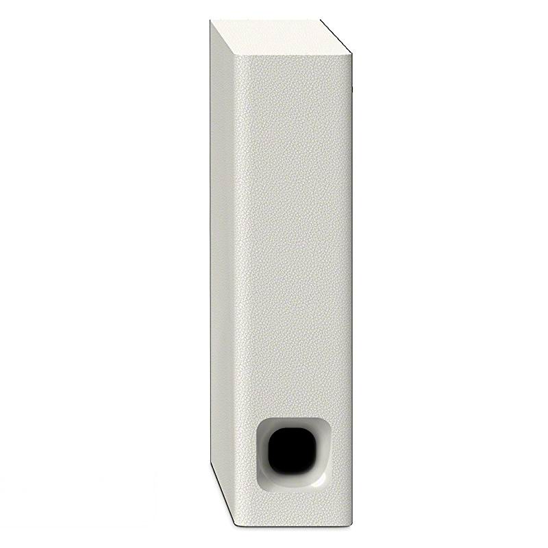 Бесроводной сабвуфер имеет размеры 95 x 383 x 365 mm и может располагаться вертикально или горизонтально. В любом положении он обеспечит яркое и насыщенное звучание басов.