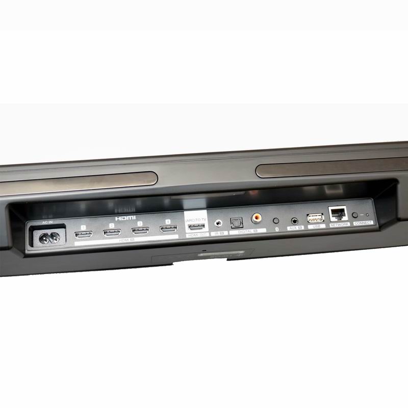 Саундбар Denon Heos Bar это трехканальный аудиодевайс с выделенным центральным каналом. У новинки четыре входа HDMI 2.0a с поддержкой HDCP 2.2: в такой конфигурации Denon предлагает подключить, к примеру, UHD Blu-ray плеер, игровую приставку, телевизионную приставку и компьютер. Саундбар Denon Heos Bar распознает форматы объемного аудио Dolby TrueHD и DTS-HD Master Audio. Усиление обеспечивает 6-канальный усилитель D-класса, раскачивающий шесть овальных мид-вуферов размером 2х5 дюймов и три полуторадюймовых твитера.
