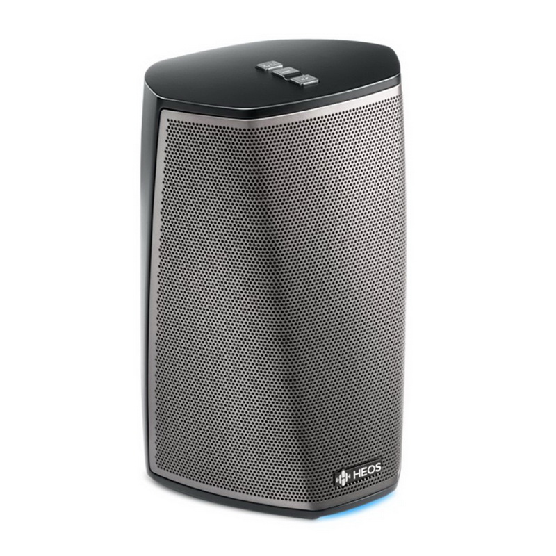 Denon HEOS 1 HS2 можно подключить к компьютерной сети по Wi-Fi или Ethernet, и она сможет воспроизводить музыкальные файлы со всех доступных устройств. Также колонка может принимать интернет-радио, и предоставлять доступ к популярным on-line сервисам, таким, как Spotify, Deezer, Tidal и другим. При использовании для управления системой планшета или смартфона на его дисплее будет отображаться информация о звучащей композиции и обложка выбранного альбома. HEOS 1 можно использовать как самостоятельно, так и в составе мультирум-системы на базе АС данной серии. Кроме того, весьма интересной является возможность объединения двух таких колонок в стереопару – благодаря отсутствию задержки транслируемого сигнала в результате можно получить очень неплохой стереозвук. АС имеет линейный вход на разъеме mini-jack и USB-порт для портативных накопителей, причем подсоединенное к нему запоминающее устройство будет доступно и для других HEOS-компонентов в сети.