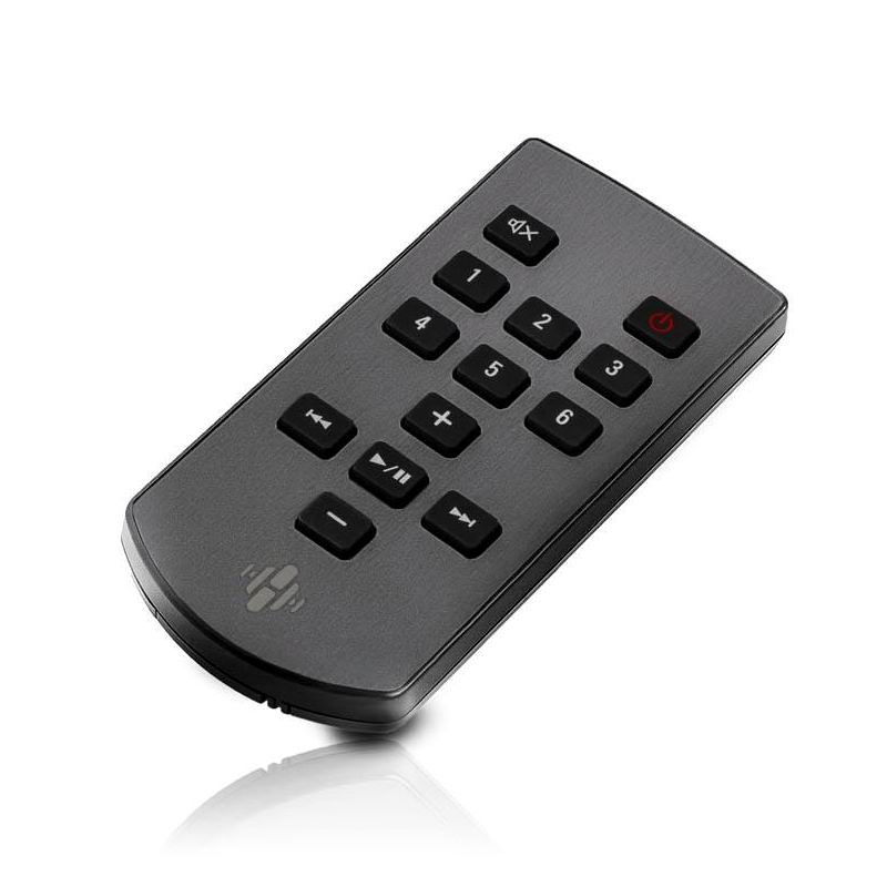 Другая деталь: при «лежачем» размещении акустики перед панелью, бывает, она собой закрывает ИК-приемник. Чтобы не возникло проблем с управлением телевизором, разработчики предусмотрели в задней части корпуса Denon HEOS Bar ИК-ретрансляторы и поставили гнездо для внешнего приемника команд. А заодно – дополнили его комплектацию простым пультом ДУ для оперативной смены режимов работы системы «в одну кнопку», поэтому пользоваться техникой смогут не только владельцы смартфонов.