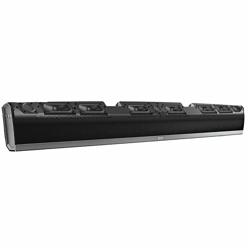 Саундбар Denon Heos Bar это трехканальный аудиодевайс с выделенным центральным каналом. У новинки четыре входа HDMI 2.0a с поддержкой HDCP 2.2: в такой конфигурации Denon предлагает подключить, к примеру, UHD Blu-ray плеер, игровую приставку, телевизионную приставку и компьютер. Саундбар Denon Heos Bar распознает форматы объемного аудио Dolby TrueHD и DTS-HD Master Audio. Усиление обеспечивает 6-канальный усилитель D-класса, раскачивающий шесть овальных мид-вуферов размером 2х5 дюймов и три полуторадюймовых твитера.