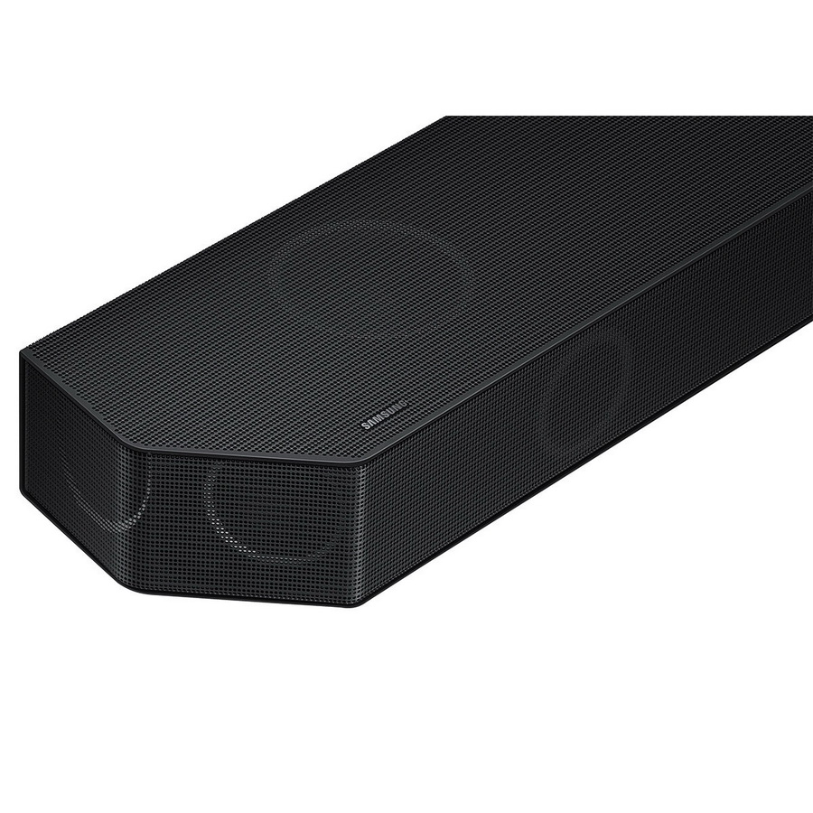 Samsung HW-Q990B — это флагманская звуковая панель компании, которая комплектуется беспроводными сабвуфером и тыловыми колонками. Саундбар оснащен 16-ю каналами для полной реализации возможностей звуковых дорожек в форматах Dolby Atmos и DTS: X. Samsung Q990B имеет интеллектуальное управление с поддержкой нескольких голосовых помощников. Беспроводное воспроизведение контента возможно через Wi-Fi или Bluetooth, включая Apple Airplay 2 и систему Samsung Tap View для соединения с совместимыми телефонами компании. Для ее задействования смартфон нужно просто поднести к саундбару.