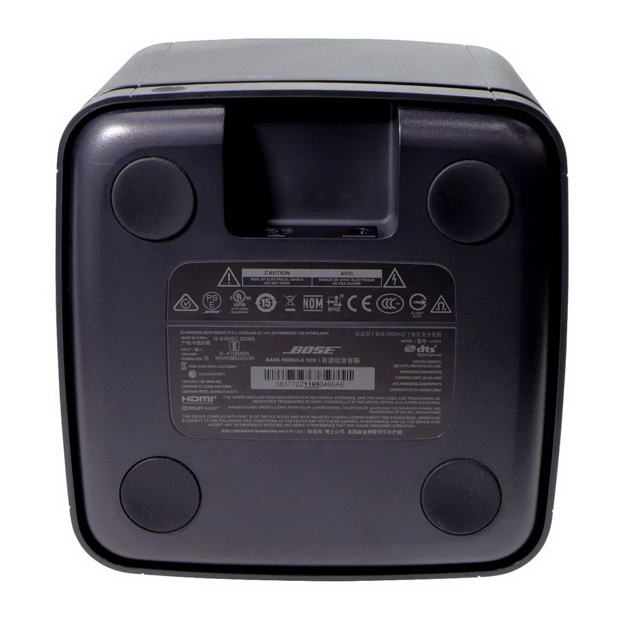 Сабвуфер имеет мощный заказной басовый динамик, который нагружен на небольшую акустическую камеру в нижней части корпуса Bose Bass Module 500 Она обеспечивает равномерное распределение низких частот в комнате прослушивания и качественные басы при любом типе напольного покрытия. Благодаря этому, а также глубокому демпфированию корпуса басы сабвуфера чистые и неокрашенные на любой громкости. Для подключения сабвуфера к саундбару Bose можно использовать беспроводное или проводное (через вход mini-jack 3,5 мм). Беспроводное подключение производится с помощью нажатия и удержания кнопки на сабвуфере, и не вызывает никаких сложностей. Беспроводное соединение стабильно работает в радиусе до 9 метров, что упрощает задачу размещения сабвуфера в комнате.
