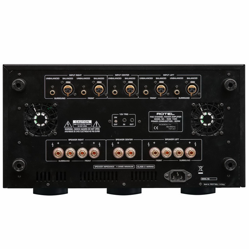 Rotel RMB-1585 имеет пять пар винтовых клемм для подключения акустики и способен стать солидным фундаментом для любой кинотеатральной системы. Его также можно использовать в мультирум-инсталляциях. Мощник обладает эффективной системой защиты, которая отключает его при перегрузке, перегреве, замыкании и в других нештатных ситуациях.